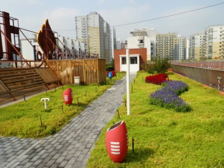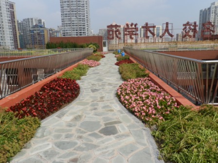 項目名稱:北京十四中屋頂綠化工程 學(xué)校屋頂綠化工程、屋頂草坪、佛甲草、屋頂綠化景觀小品、屋頂承載力檢測、屋頂花園設(shè)計施工 對于學(xué)校,我們充滿敬意! 北京十四中,百年學(xué)堂,為國家哺育太多的人才。能夠為這樣的學(xué)校做屋頂綠化工程,景天環(huán)藝感到無比自豪! 校園的綠化,能培養(yǎng)同學(xué)們健康向上的審美情趣,使同學(xué)們在學(xué)習(xí)生活中感受到生命的激昂和生活的豐富多姿,給人留下終生難忘的印象。使同學(xué)們學(xué)習(xí)輕松,老師們工作舒適。 綠色的花草樹木,可以凈化空氣、減少噪音、調(diào)節(jié)氣候,使學(xué)校成為清潔、優(yōu)美的學(xué)習(xí)活動場所。 在施工前,景天環(huán)藝嚴格測試樓頂承載力,確認超過300公斤/平米施工標準,又改進設(shè)計,精確施工,使我們的綠化壓力不足100公斤/平米。 對于樓頂綠化要求最嚴格的是防水,景天環(huán)藝更是精益求精。制定詳實可行的施工方案,選購最優(yōu)的材料,嚴格精細施工。確保施工質(zhì)量。 在后期在住房和城鄉(xiāng)建設(shè)部對屋頂綠化做的調(diào)研中,大力表揚了北京十四中的樓頂綠化工程。雖然沒有提到景天環(huán)藝,我們還是備受鼓舞!